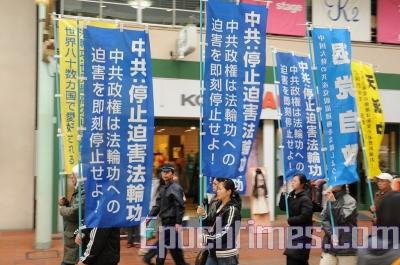 5200万人の中国人が中国共産党とその関連組織から脱退したこと声援するため、NP0法人の全世界脱党支援センター日本支部が主催で、法輪功学習者や、在日華人などが4月5日、神戸市の繁華…
