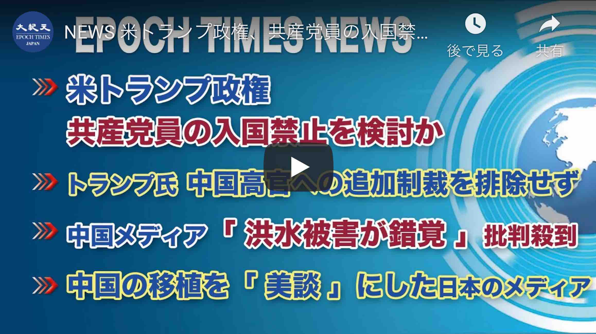 【脱党支援センター 2020年7月17日】 1、米トランプ政権、共産党員の入国禁止を検討か 2、トランプ氏、中国高官への追加制裁を排除せず 3、中国メディア「洪水被害が錯覚」批判…