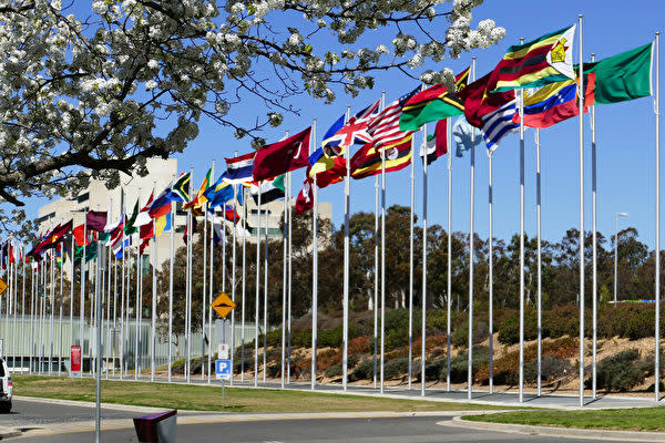 豪州キャンベラのバーリー・グリフィン湖の岸に飾られている万国旗(安平雅/大紀元) 【脱党支援センター 2020年7月17日】 中国当局による伝統気功グループ、法輪功学習者に対する…