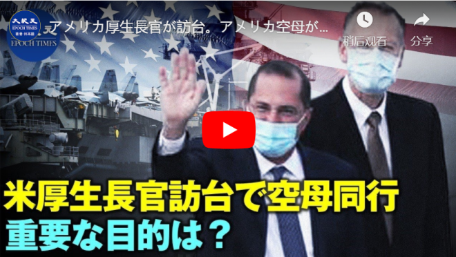 【脱党支援センター2020年8月14日】 アザールアメリカ厚生長官は8月9日、代表団を率いて台湾に到着し、3日間の訪問を開始した。アザール厚生長官が台湾訪問を開始した際、アメリカ空…