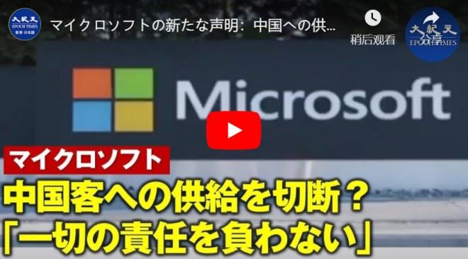 もっと見る >マイクロソフトの新たな声明:中国への供給を切断した場合 「一切の責任を負わない」| 中共のIT業界は壊滅的な打撃に直面するかも【動画】