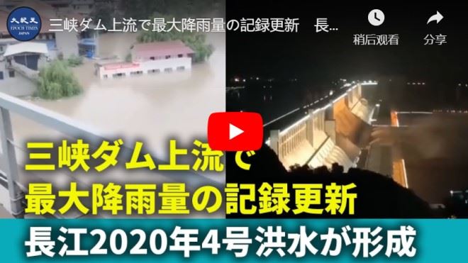 【脱党支援センター2020年8月14日】 長江上流域の寸灘水文観測所では8月14日早朝5時に、川の流量が毎秒5万9900立方メートルまで上昇し、中国長江水利委員会水文局は、同日、規…