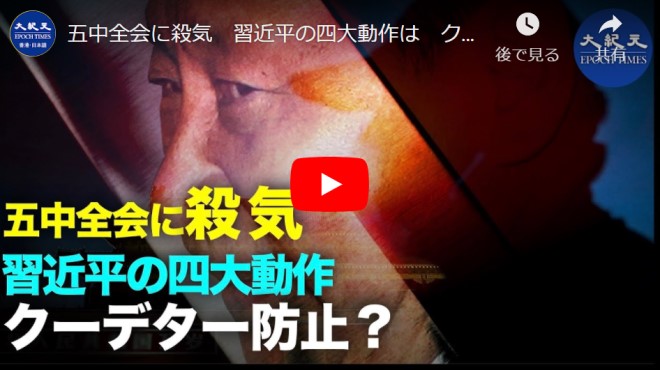 もっと見る >五中全会に殺気 習近平の四大動作は クーデター防止【動画】