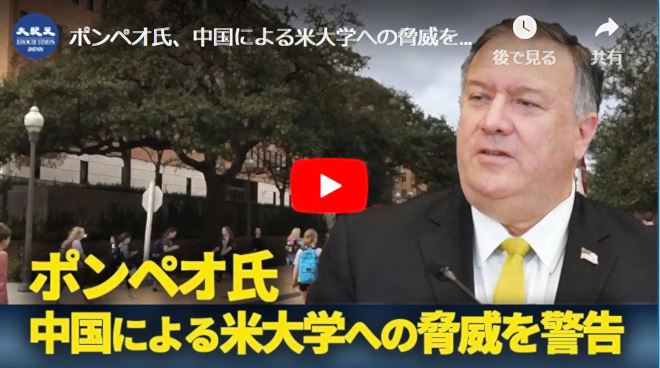 12月9日、マイク・ポンペオ米国務長官はジョージア工科大学で中国による米国の国家安全保障への脅威について講演を行いました。ポンペオ氏は、中国共産党(中共)が技術盗用、言論弾圧、中国…