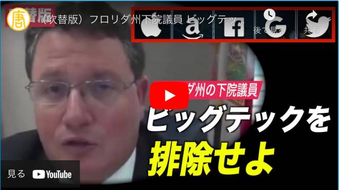 もっと見る >フロリダ州下院議員 ビッグテックの検閲への対抗を呼びかける FLA REP CALLS TO DIVEST FROM BIG TECH【動画】
