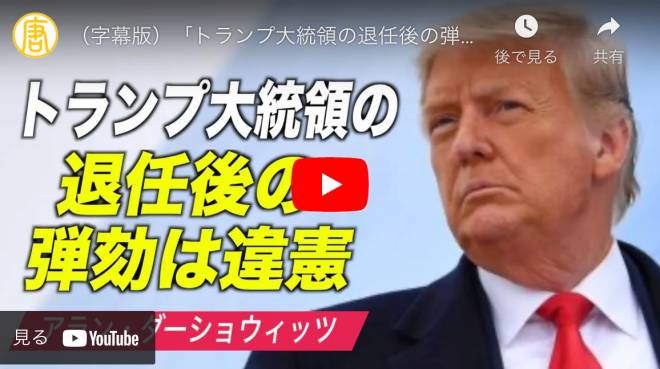 (字幕版)「トランプ大統領の退任後の弾劾は違憲」ハーバード・ロースクールの名誉教授 ‘UNCONSTITUTIONAL’ TO IMPEACH AFTER TERM【動画】