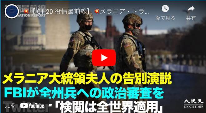 もっと見る >【 01.20 役情最前線】メラニア・トランプ大統領夫人の告別演説 |ワシントンD.C.火災? FBIが全州兵への政治的審査実施【動画】