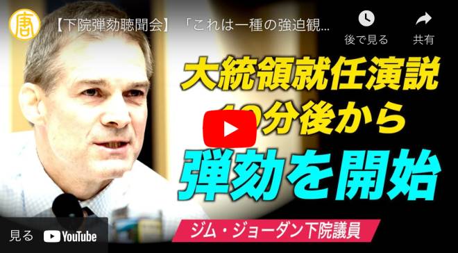 もっと見る >【下院弾劾聴聞会】「これは一種の強迫観念だ。今やこの強迫観念は大統領弾劾だけにとどまらない」OH州ジム・ジョーダン下院議員【動画】