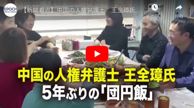 もっと見る >【新聞看点】中国の人権弁護士 王全璋氏 5年ぶりの「団円飯」【動画】