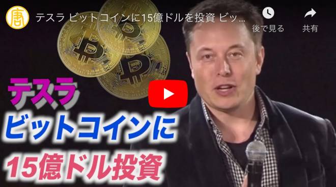 もっと見る >テスラ ビットコインに15億ドルを投資 ビットコイン過去最高値を更新【動画】