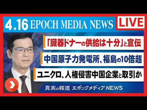 もっと見る >大紀元報道ライブ0416。ユニクロ、人権侵害中国企業と取引か。中国原子力発電所トリチウム排出規制基準、福島の10倍超【動画】