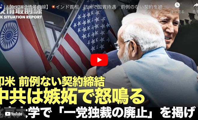 もっと見る >【06.24役情最前線】インド首相 訪米で国賓待遇 前例のない契約を締結 中共は嫉妬して怒る 北京大学で「一党独裁の廃止」を掲げ 香港記者協会が、民主国家禁止令案に反対、報道の自由に影響か
